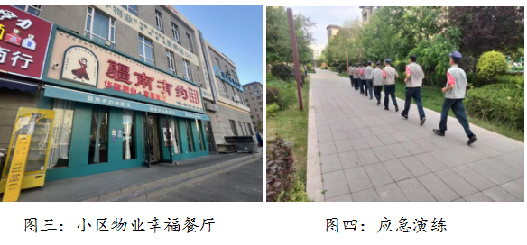 (二)创新服务模式,提升幸福温度。一是精准关爱,传递温暖。创新推出“幸福餐厅”为小区老年人、幼儿等弱势群体提供就餐保障,解决吃饭难题,减轻家庭成员家务负担。同时,为辖区居民创造更多就业机会。二是智慧赋能,夯实家园安全屏障。为切实加强小区安全管理工作,滨河新城小区全面部署单元门可视化门禁系统,依托高清摄像头实时传输画面;常态化开展消防应急演练、防灾减灾知识宣传及24小时安全巡查工作,真正实现“人防、物防、技防”三防一体的安全防控体系。三是将党建作为紧密纽带,充分发挥凝聚和引领作用。物业积极对接辖区各类资源,精心组织并开展形式多样、丰富多彩的公益活动,例如“红色义诊”活动,邀请专业的医疗团队为居民进行免费的身体检查和健康咨询,让大家能够及时了解自己的身体状况;“公益课堂”则涵盖了文化知识、技能培训等多个领域,为居民提供学习和提升自我的场合;“惠民演出”为居民带来了精彩的文艺表演,丰富了大家的精神文化生活;“义务为老人理发”活动则体现了对老年群体的关爱和照顾,让老人们感受到社会的温暖。四是在小区的人行入口处,配备了一个便民工具箱、平板车和手推车,方便业主搬运重物;还配有轮椅、打气筒、雨伞等。通过提供免费的便民服务,让每一位业主都能切实感受到物业服务的贴心、暖心。