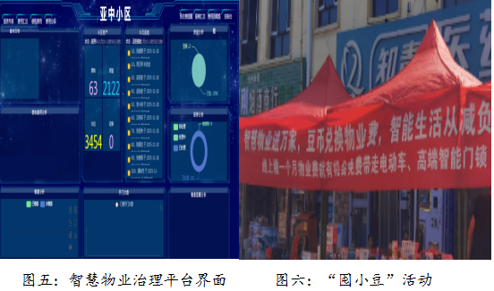 (二)智慧平台强赋能,治理提质惠民生。亚中玛河生态城小区创新引入智慧物业治理平台,深度融合物业管理、物联网技术与生活服务功能,构建多维度集成化治理体系,以科技赋能驱动治理提质升级、服务精准惠民。一是整合核心数据,筑牢精准治理根基。智慧物业治理平台全面归集59栋楼宇基础信息、1300辆居民车辆数据及报修巡检全量信息,实现小区常态化服务数据与物业日常办公系统的高效对接、深度整合,系统梳理形成标准化小区信息台账,为精准对接居民多元化需求、提供个性化服务筑牢数据支撑。二是优化诉求处置,提升治理服务效能。小区物业依托智慧平台报事报修功能,建立居民诉求“及时响应、精准处置、全程溯源、闭环管理”全链条机制,确保业主各类民生问题在发现之初即得到快速响应与妥善解决。物业治理指挥中心全程统筹协调、实时跟踪监督,大幅压缩问题处置周期,治理服务效率与居民获得感显著提升。三是创新便民模式,激发居民参与活力。智慧物业治理平台新增商业互动与便民服务模块,业主可通过消费返积分享受平台优惠与生活便利;依托“囤小豆”豆币积分活动,居民可兑换物业费减免等惠民权益,有效提升居家生活便利性与幸福感。智慧物业治理平台的建设成效,充分彰显了“融合、亲民、共享、提升”的治理价值理念,为推进小区治理现代化、构建共建共治共享新格局提供了坚实有力的科技支撑。
