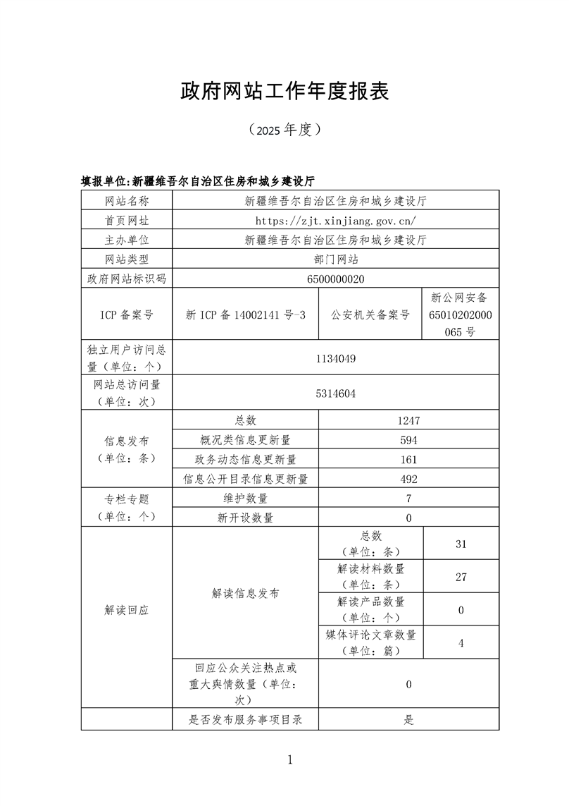 自治区住房和城乡建设厅2025年度政府网站工作年度报表