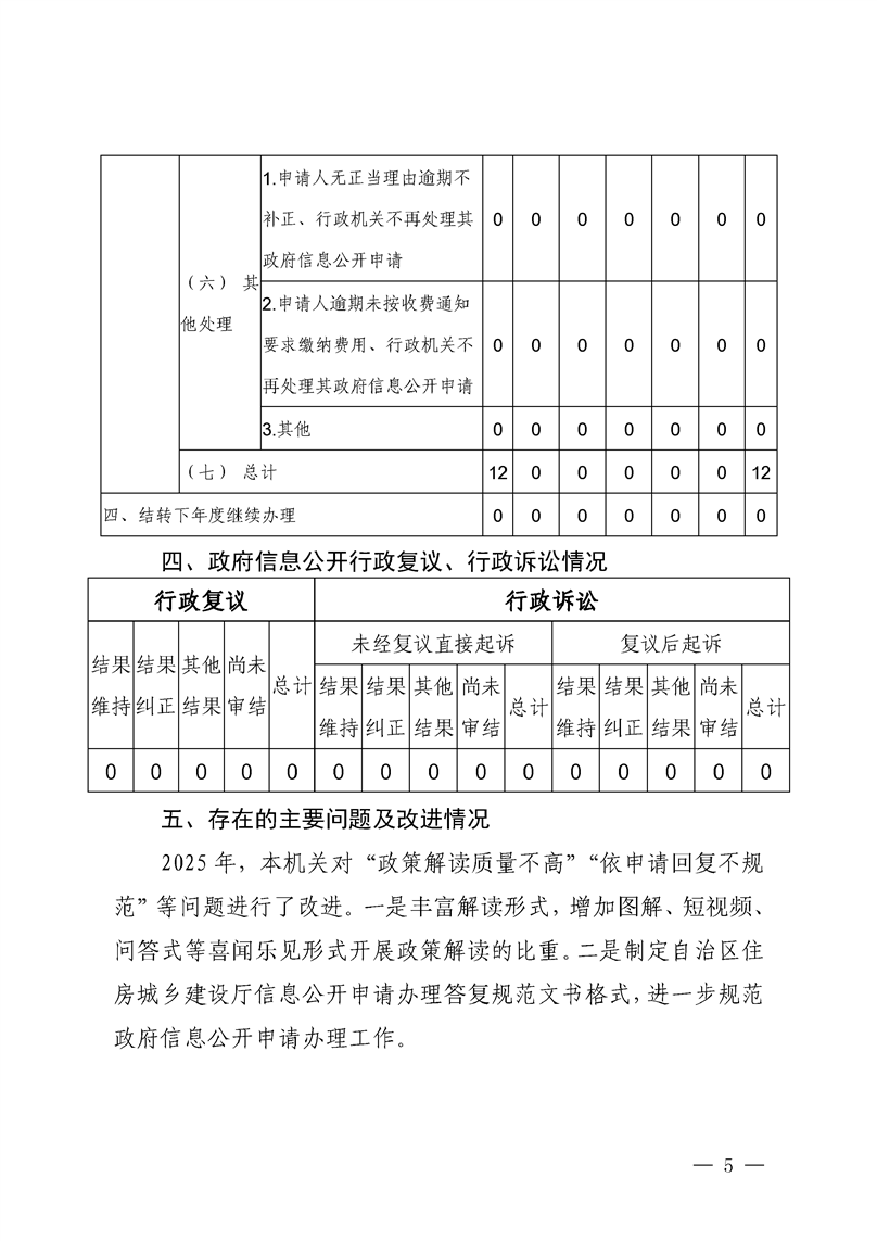 自治区住房城乡建设厅2025年政府信息公开工作年度报告